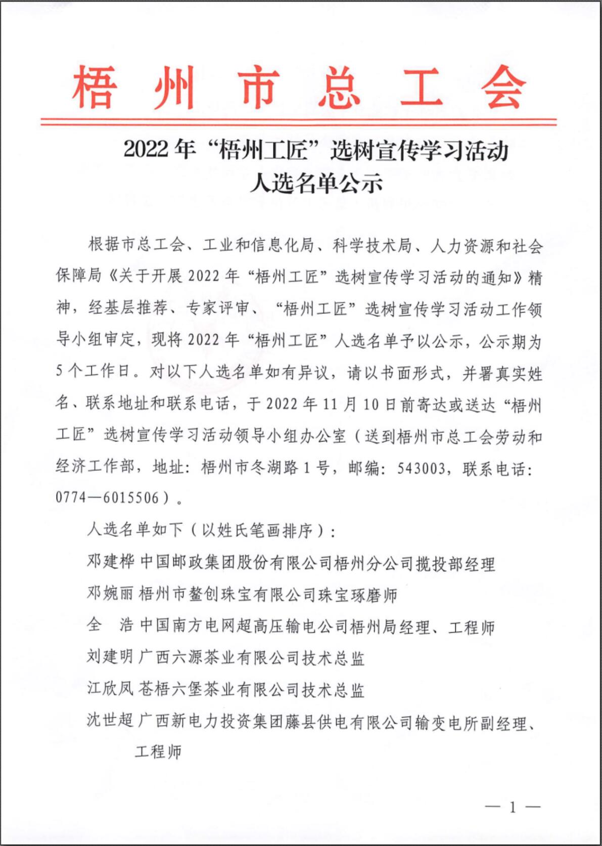 2022年“梧州工匠”選樹宣傳學習活動人選名單公示