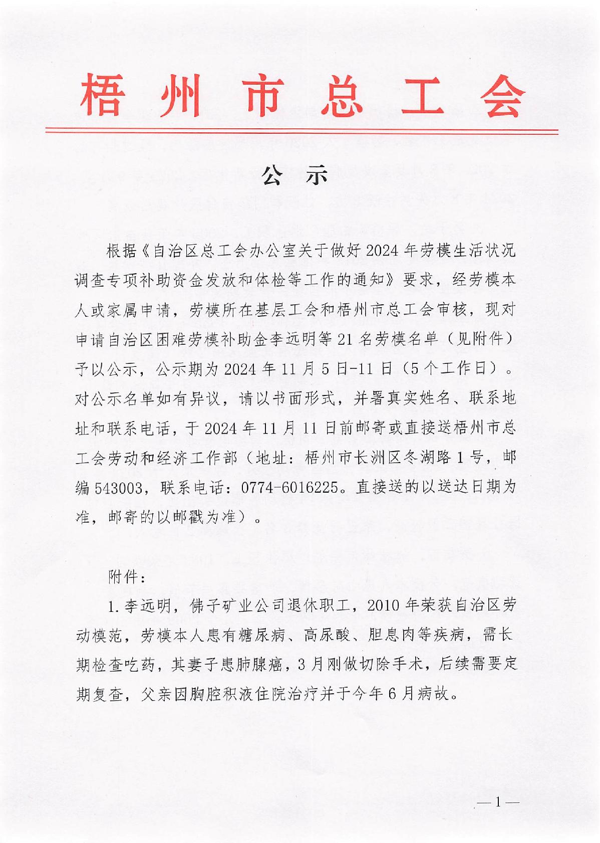 2024年梧州市(本級)自治區(qū)困難勞模公示名單